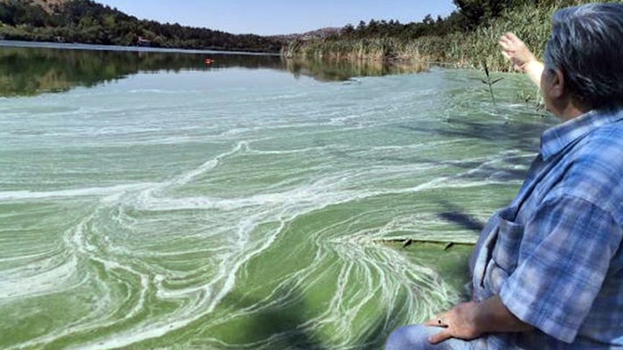 Eymir Gölü de kirlendi: Müsilaja benzeyen görüntü, küresel ısınmanın sebep olduğu siyanobakteri artışından kaynaklanıyor.